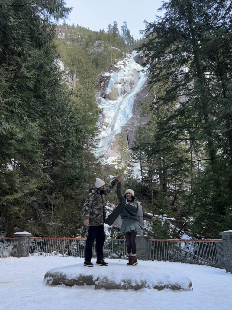 When we first moved to Canada, we didn’t know where to begin exploring. One weekend, we spontaneously decided to drive toward Whistler. That day, we stumbled upon Shannon Falls, we were in complete awe. It felt like a portal to another world, and it sparked a love affair with BC’s waterfalls that hasn’t stopped since. Over time, we’ve revisited these spots with friends, as a couple, and even with our parents, each visit adding new memories and stories to our journey.